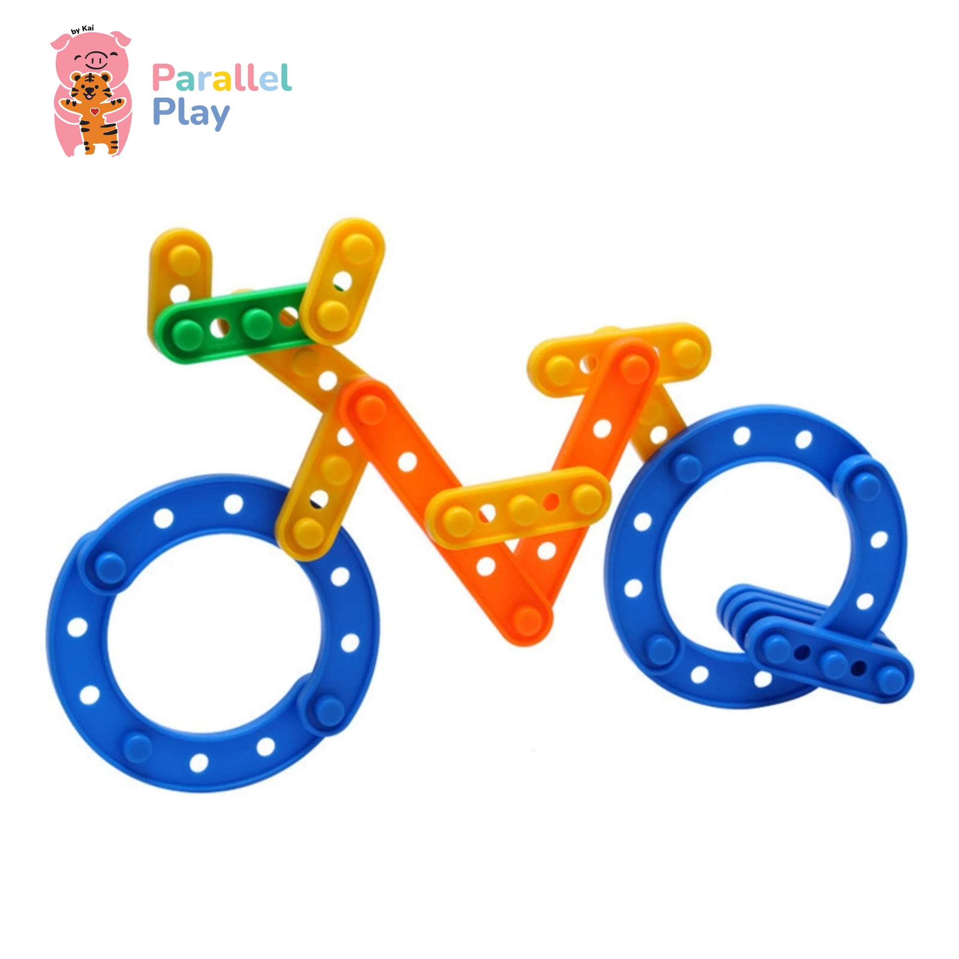 Perfect for curious minds, this hands-on building set lets little ones connect, stack, and design freely — from bikes and houses to flowers and letters!
